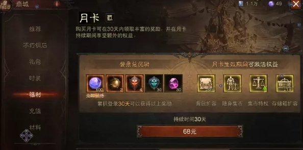 月卡也是收益很高的一个福利,相比礼包来说还是比较推荐的