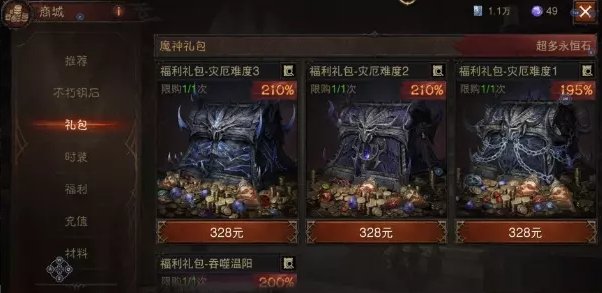 礼包说实话不是很推荐,虽然限购的礼包还算可以,但比起先祖、月卡、成长基金确实性价比不高。