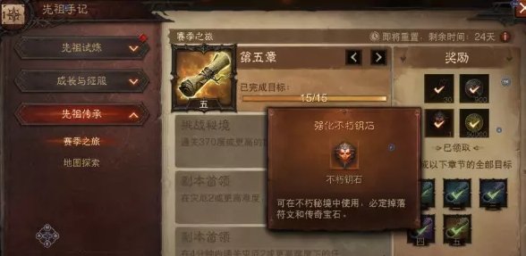 完成赛季之旅的目标就会获得强化不朽钥匙,目前赛季之旅会持续到12月12日,大家还有大量时间追赶,从第三章到第六章可以获取4把红钥匙。