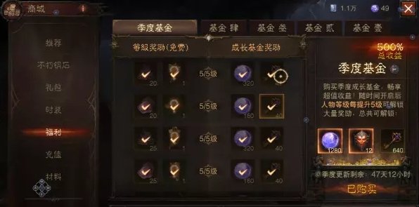 个人是比较建议普通玩家去买成长基金的,确实500%的收益性价比高过任何礼包,128元可以获得1280永恒石,12个红钥匙,永恒石你可以买套时装也可以买点紫钥匙。