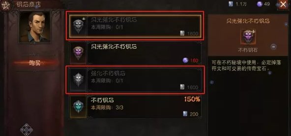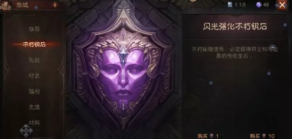 如果你是氪佬想要快速运用钞能力,那么直接购买不朽钥石也是可以的,紫钥匙购买是用永恒石(购买很多礼包会送,或者直接充值)