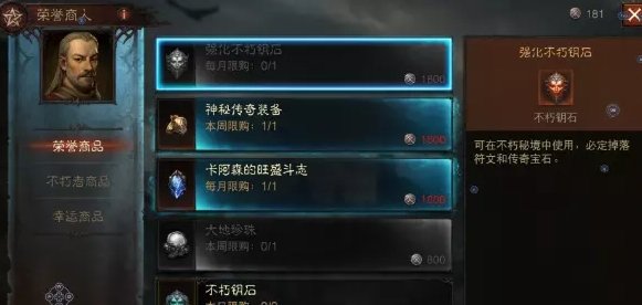 每月不管是暗影会还是不朽者阵营都可以在荣誉商人用1600荣誉币兑换红钥匙