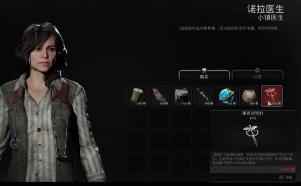 2、在医生NPC出现后,可以通过互动开启商店,需要消耗1500购买职业材料医务兵饰针。