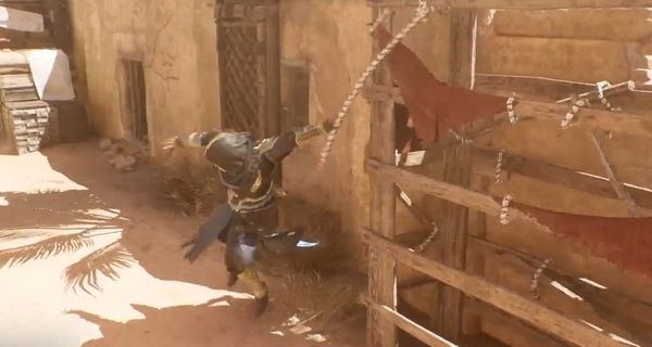 2、靠近脚手架的绳子,然后进行交互即可破坏脚手架,非常的简单。