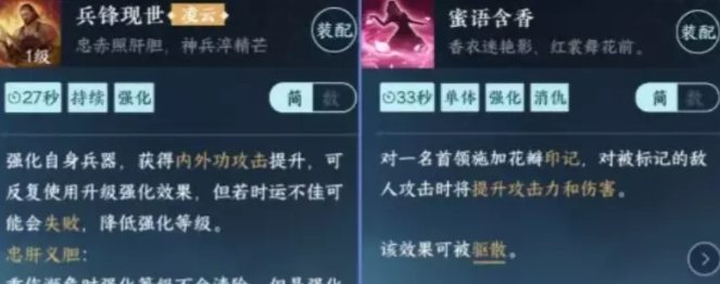 第二套群侠技能组合【兵锋现世】和【密语含香】。