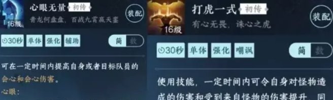 第一套百家技能组合【心眼无量】和【打虎一式】。