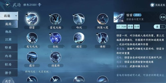 惊雷流的远程攻击手段,并且可以搭配白虹使用,恢复剑意