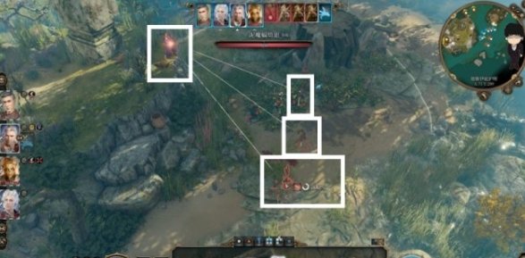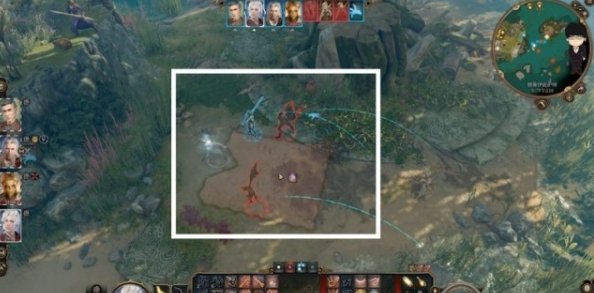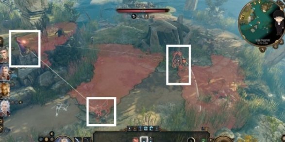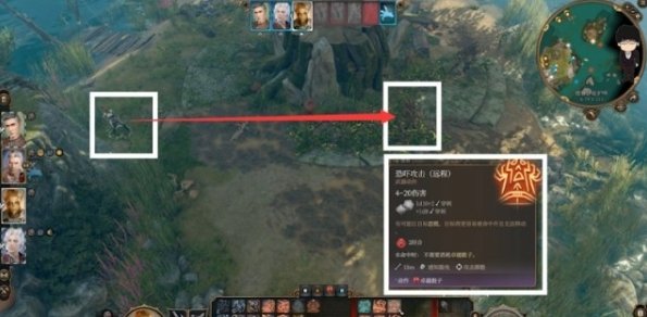 接着单独控制阿斯代伦下高台,卡住视野盲区,打更前面的泥魔蝠。打完后先隐匿,再远离,这样下个回合很大概率不会被对方视野扫到