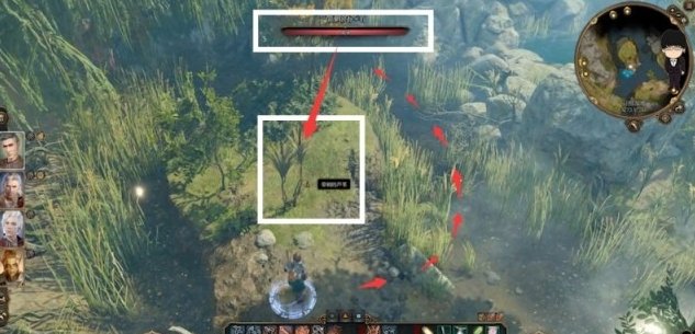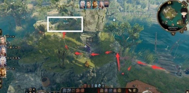 等第二个怪回头瞬间,接着往前走。当走到木板路附近时,注意前方怪物动向,视野范围即将回头抵达西边藤蔓前强制进入回合制。这样就可以在回合制下利用疾走逐个控制四名角色爬上高台