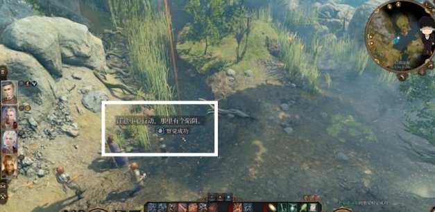 起手如果往西南走会触发一段剧情,这里如果投骰子成功后则会揭示是片沼泽,失败也没关系,后面还有其他方式