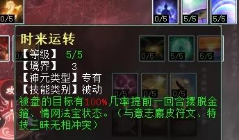 “盘”天赋第三层三个技能,分别是:修魂固魄(任务、PK通用,增加战斗中的人法抗性),未雨绸缪(任务、PK通用,被盘单位提前一回合摆脱冰混睡忘状态),时来运转(任务、PK通用,被盘单位提前一回合摆脱金箍、情网)