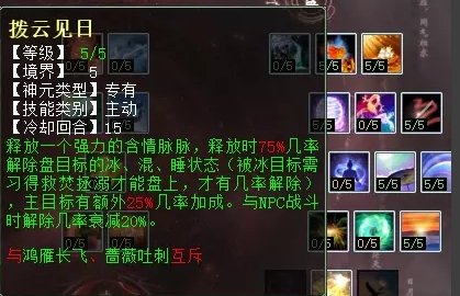 “蔷薇吐刺”和“鸿雁长飞”目前基本没人用,因为在神技“拨云见日”面前毫无亮点,持续回合数短,又同为冷却回合数长的主动技,是它们被嫌弃的最大原因。“拨云见日”的强大处在于,它可100%解除主目标的被控状态,若是天枢点达到85点,点出第二层大招,还可有75%的几率解除主目标的金箍、情网状态,大春、小春都没它好用,称之为神技一点不为过。