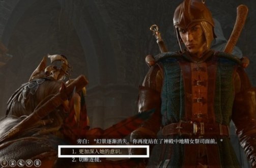 接着下个选项选2,允许女祭司翻找记忆。接着下个选项中,选项3只是过度剧情,选1把它弄出来则会继续。继续下个选项,同样选项3是过度剧情,选1我准备好了就会继续剧情发展