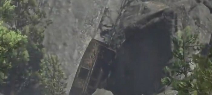 我们需要到这个车厢位置,然后旁边有一条路可以上去,到达坡顶后跳进车厢。
