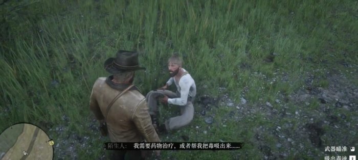这里有一个被蛇咬的人,给他疗伤药或者帮他吸出蛇毒。