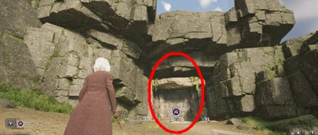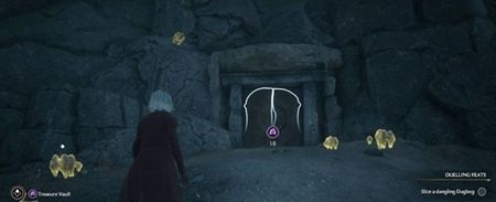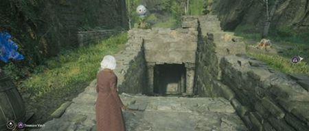 【位置】用[统统飞走]开门;进来之后,用[羽加迪姆·勒维奥萨]将地上的小石块嵌入墙上的凹槽中。