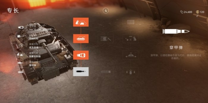 而第4级的穿甲弹,那就是专精反坦克的炮弹,极低的下坠,更高的弹速,对载具更高的伤害,以及……更大的跳弹角度