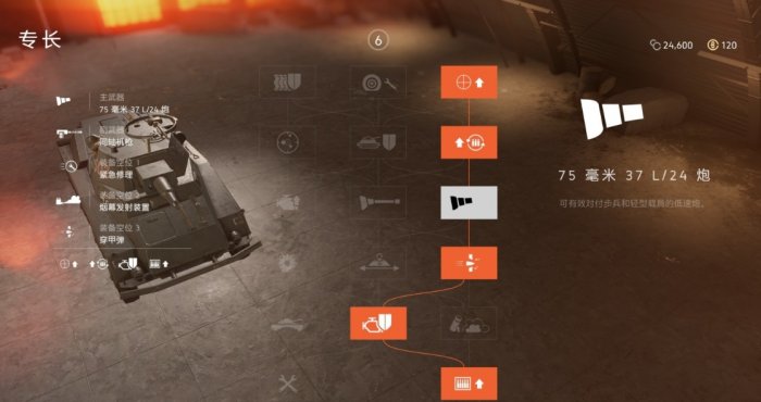 我们先讲讲左线,第3级的长75炮是这条线的精髓,与初始的短75炮相比,长75弹道更直,下坠更小,对载具伤害更高,但同样的,相对于短75,长75对步兵的溅射范围更小一点,要求更精准的命中