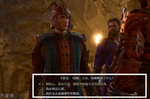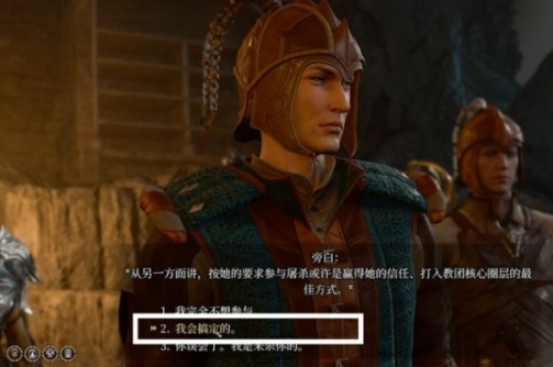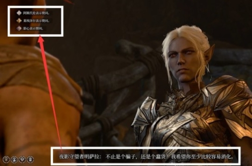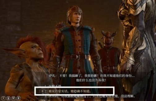 最后选项选2就结束了当前剧情对话。队伍中有阿斯代伦,则最后选项会有好感度提升