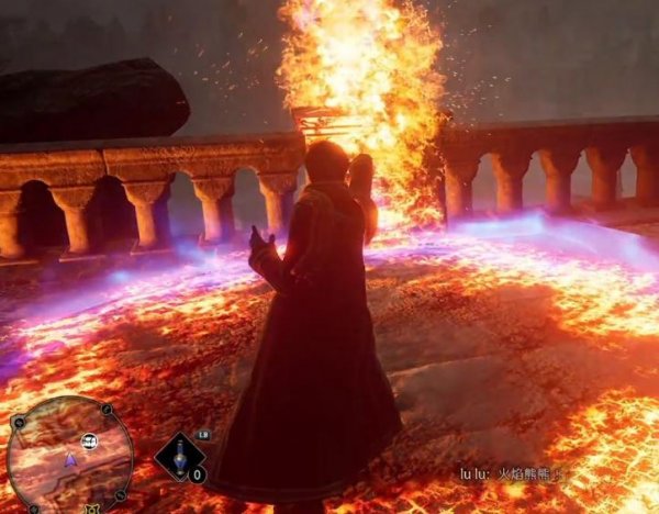 到达桥上后,玩家可以发现桥的左右两边会有四个火盆,首先使用“火焰熊熊”将其轮流点燃。