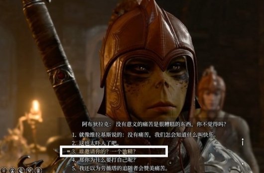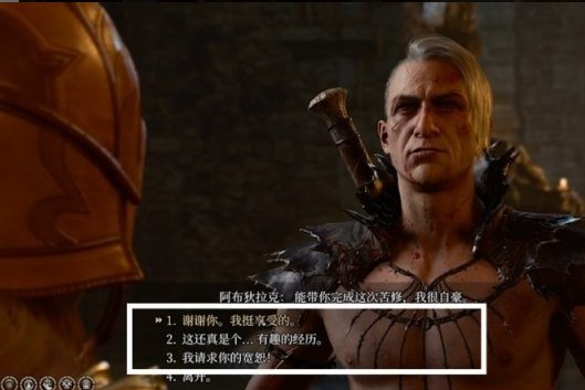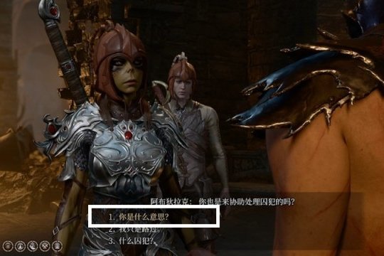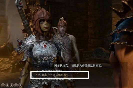 上前触发剧情,如果检定成功,会知道阿布狄拉克的背景,之后会出现特殊选项。第一个选项选1你是什么意思?接着下个选项选3,可以了解他来这里的原因