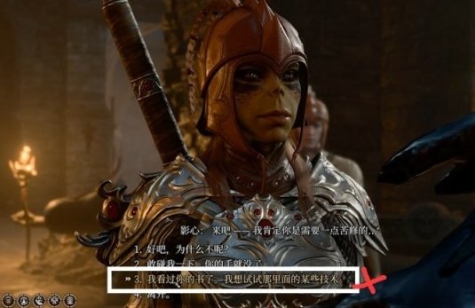 接着推荐不要选3,因为之后的选项虽然可以继续触发吃BUFF的剧情,但影心和阿斯代伦的好感度就没了