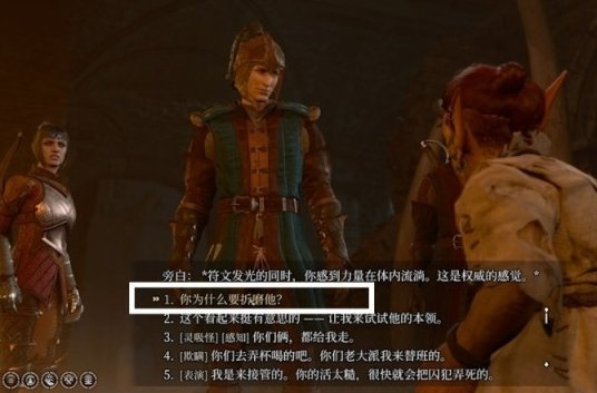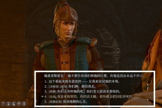 接着对应属性选项选择,小编个人推荐选5侦测思想,投骰子难度低,也能了解到更多剧情。接着选1我来接管,这样施虐者斯派克就会直接离开这个房间