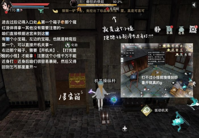 二、进入迷宫后,能看到很多带问号的指引标,但咱们只需要收集,第一个箱子的任务道具(好像叫猩红液体)留着开大宝箱用