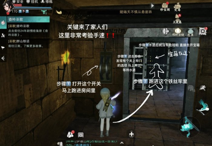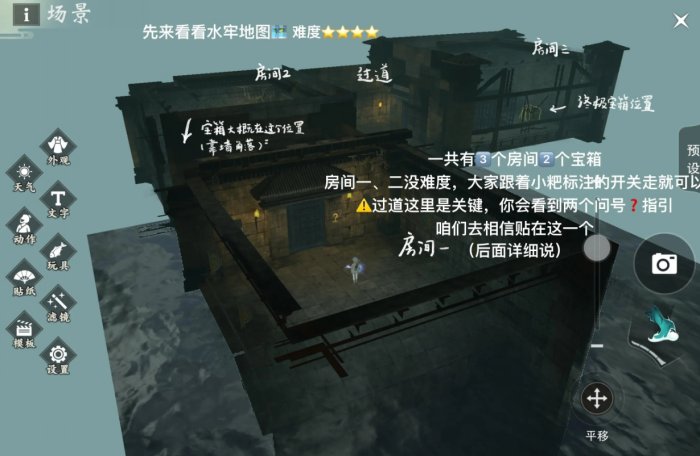 二、先来看看水牢的地图!一共有三个房间两个宝箱一个过道~前面都很简单~过道那里需要特别注意一下!!