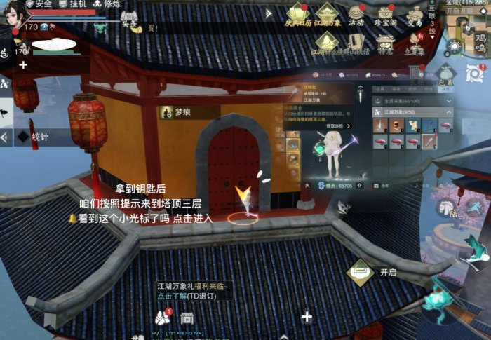 二、根据钥匙的提示,来到塔顶三层(注意不是从塔往上数第三层),实在搞不清楚的饱饱咱们就老老实实找小光标~