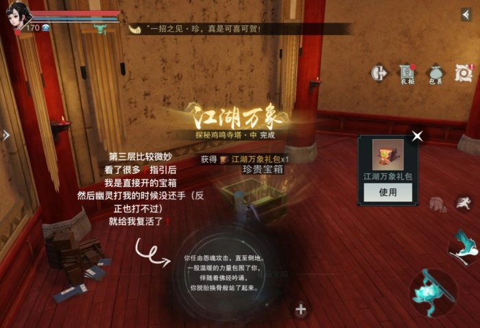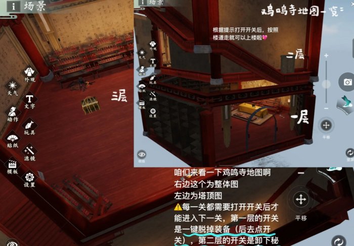 整个鸡鸣寺塔中一共3层,包含2个机关和1个宝箱机关,共2个宝箱。