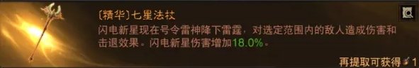 法师的七星主手是号令雷神降临,带范围击退效果,充能两次,但攻击范围其实没有很大而且是指向技能,个人觉得不是很好用,目前法师主流BD是用不上的。