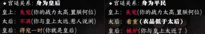3、平民同时功力高于皇上,衣品高于太后,和皇上距离近于皇后,无法获得额外属性。
