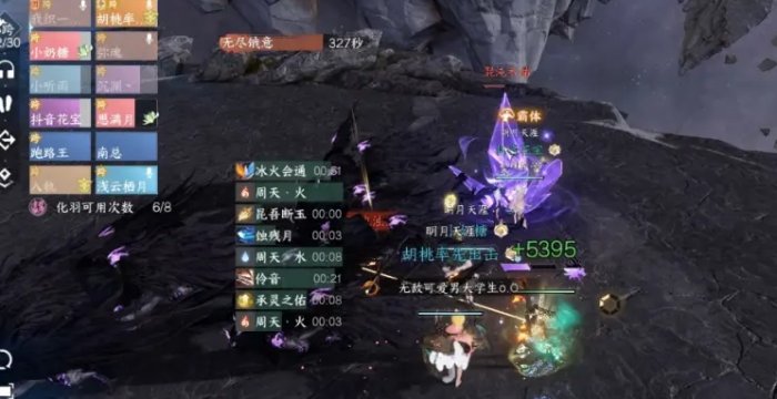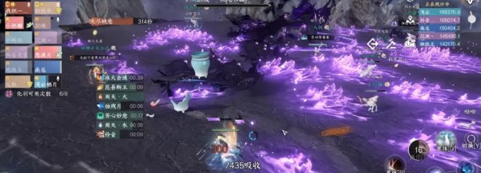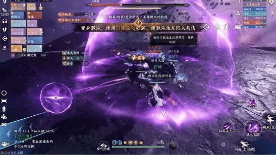 第二阶段:飞平台打混沌浊息之前同样有2轮紫圈,此时安排输出7~9,连续进2轮紫圈。这三个人会在进第一次紫圈的时候变为混沌,此阶段可上天喷火消灭从混沌水晶出来的小混沌。