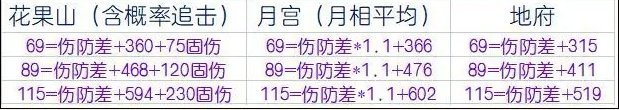 这里可以看到,地府比花果、月宫伤害相差约1~3个等级的伤害结果期望