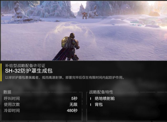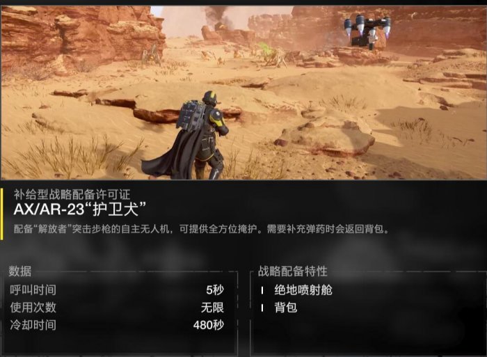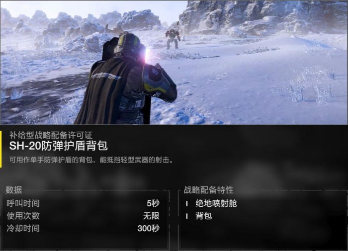 在这里提一句,这个游戏有个俗称的背包位,字面意思就是背在背上,蛋盾/漫游犬/喷气背包都是占用背包位的,机炮/飞矛等某些支援武器自带一个背包补充弹药,与蛋盾等冲突,一般不同时带,但是背包也可以给队友带让他给你补充弹药,如果你能找到人心甘情愿给你背包,就可以同时带