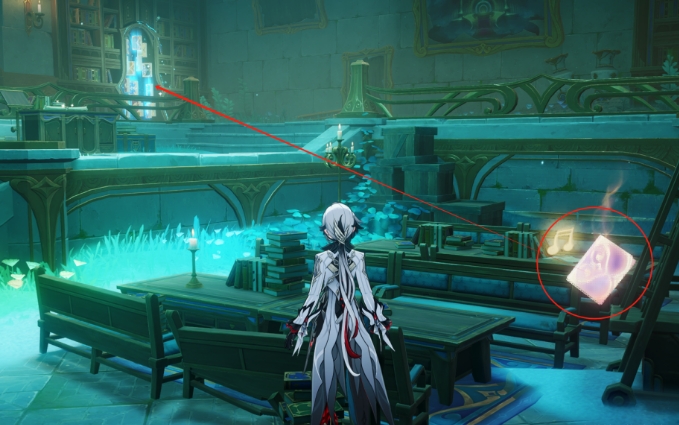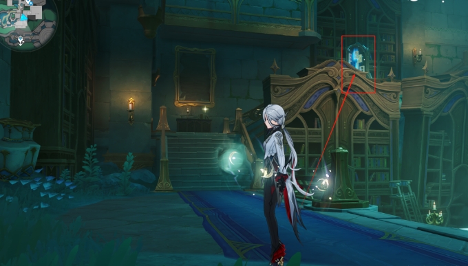 3.往南方向看,把书放入书架,再长按技能开启书门走进去