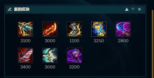 装备方面出门多兰剑默认,硬憋海妖,海妖是目前ad前期最高战力(除非你欧皇无尽刀刀暴)不要因为抗压发育而去出了个萃取,会卡格子。海妖+十字镐8级进化Q,这时候基本神奇之鞋也出来了,一般是先升级攻速鞋,然后700的反曲之弓进化E。这套思路可以在8级提供QE双进化,也是目前卡莎的常规思路。之后我一般选择在海妖羊刀之后补一个1250的大棒进化W补出金身。最后两件智慧末刃饮血/水银/千变者贾修,对方前排多选择界弓可以适配自己的混伤以及金身智慧末刃的面板双抗。