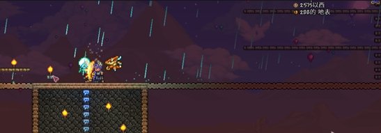 首先,先搭建一层这样的平台,距离水晶底座的地面4格高,站在水晶底座正上方,建议平台长度20左右;