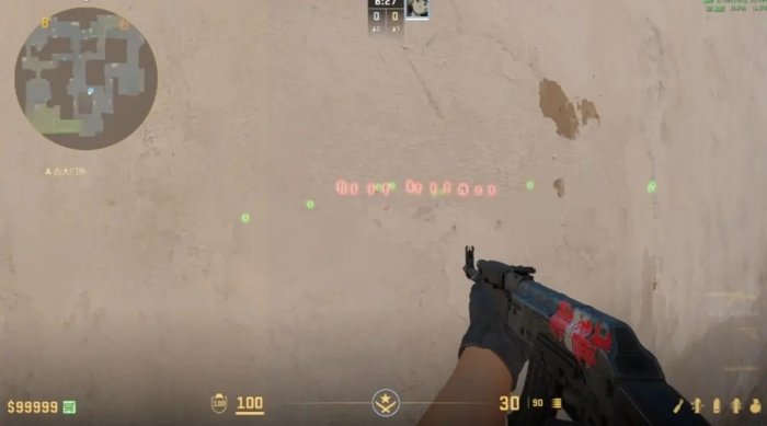 瞄准墙上的小黑点,左键直接出手