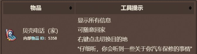 贝壳电话的传送地点能在出生点、设置的出生点(床)、海洋、地狱这四个地方切换,非常方便。