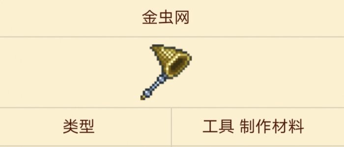 金虫网不能制作,1.25%的概率从渔夫的钓鱼任务中获得。