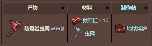 防熔岩虫网可以制作,在地狱某栋楼里把地狱熔炉刨了,