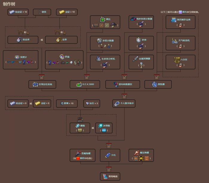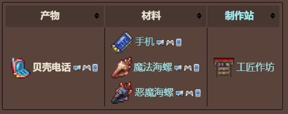 贝壳电话在泰拉瑞亚中具有第二复杂的制作树(第一复杂的是天顶剑),包含16个物品。
