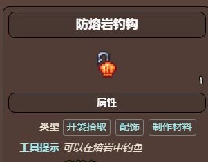 其次,防熔岩钓钩需要从在岩浆里钓鱼获得的黑曜石匣和狱石匣中获得(19%的概率开出来),这就很淦,我想在岩浆里钓鱼,要这个钓钩,但这个钓钩又要在岩浆里钓鱼才能拿到。。。。