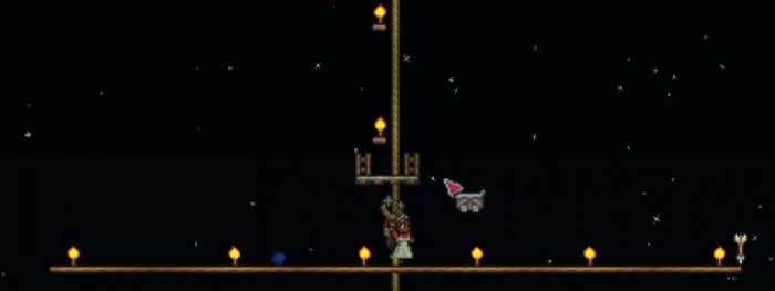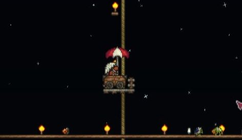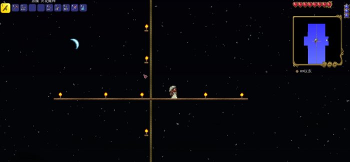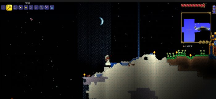 首先,先搭一个直通云霄的绳梯,当背景完全变成黑色的星空时,高度刚好合适;