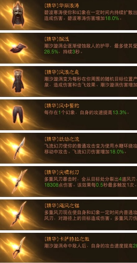 1、飞流幻刃-飞流环身:+35%移动速度并且可以移动攻击,大家把这个技能理解成圣教军的战马就可以了,速刷配装中最核心的技能。