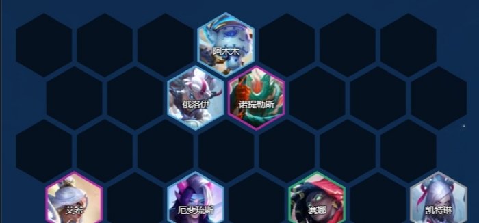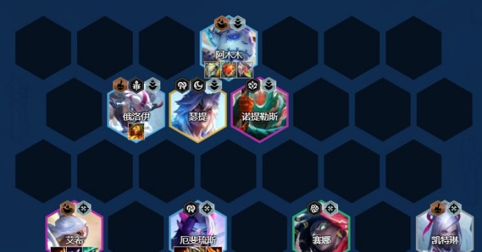 4-2左右拉8人口,大刷一波,补盖伦开出4护卫,将艾希、诺提勒斯以及场上大部分英雄搜出两星,有瑟提后替换盖伦。之后存钱慢D三星阿木木和厄斐琉斯,阿木木务必要追出三星。