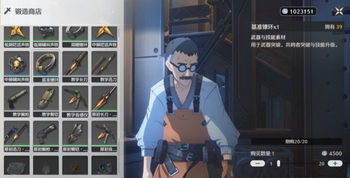 商店物品需要用游戏币购买,商品包括武器天赋材料(每种限购20),蓝色怪物素材(每种限购20),绿色怪物素材(每种限购60),白色武器,绿色武器。该商店的商品除白色武器和绿色武器无限购买外,其余商品均不刷新。