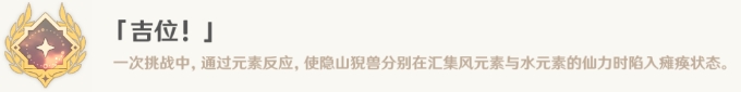 一次挑战中,通过元素反应,使隐山猊兽分别在汇集风元素与水元素的仙力时陷入瘫痪状态。